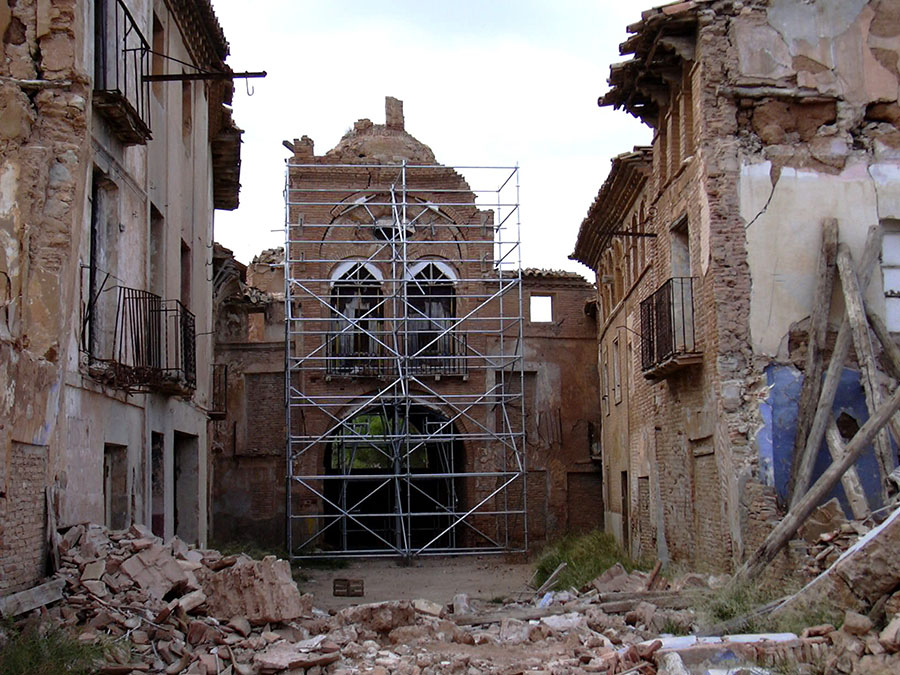 Tras el final de la guerra el general Franco, decidió construir un pueblo completamente nuevo al lado de las ruinas del antiguo, y conservar este tal como estaba, como ejemplo de los sufrimientos que había producido la guerra. Gracias a esa decisión, hoy en día tenemos la oportunidad de poder contemplar el pueblo antiguo tal y como quedó después de la batalla. Bueno, no exactamente como ese día, porque el tiempo y sus inclemencias, han derruido un poco más lo que ya estaba en un estado bastante lastimoso.