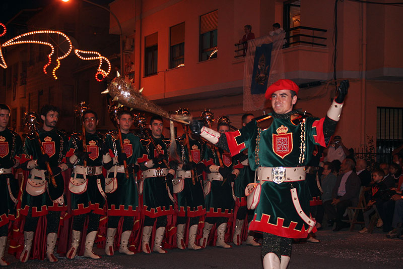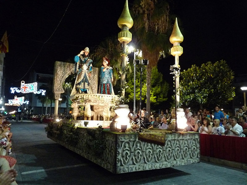 - Elche: la principal fiesta se sitúa del 7 al 11 de agosto, dentro de las Fiestas de agosto de Elche en honor a la Virgen de la Asunción, patrona de la ciudad. Consisten en una entraeta, entrada mora, desfile infantil y alardo y posteriormente la embajada y el último día la entrada cristiana. Son actos de enorme colorido y gran majestuosidad. En febrero se celebra el Medio Año (Mig Any en valenciano), consistente en un pasacalles y varios mañaneros.