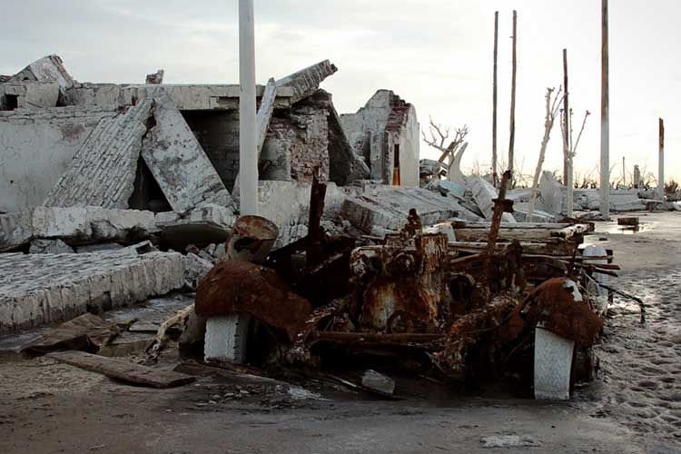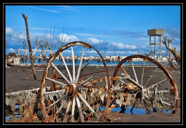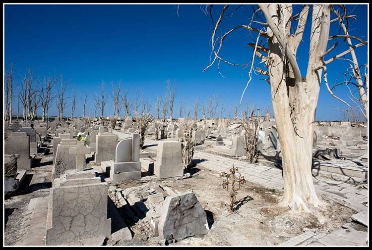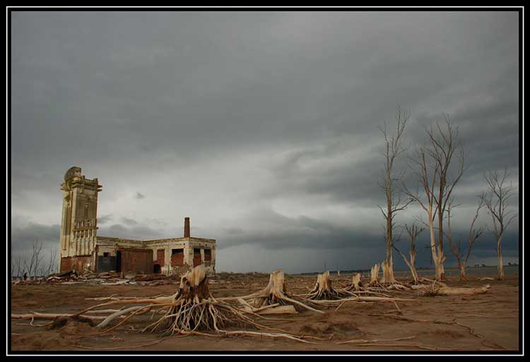 Ahora, ahí delante, plantada frente a lo que un día fue su hogar, se dio cuenta de que, aunque nunca podría haberlo evitado, había cometido un error al decidir volver cuando le dijeron que parte de las aguas se habían retirado y ciertas zonas del pueblo estaban de nuevo a la vista. Prefería seguir soñando con el edén perdido antes que hallar ese montón de ruinas. En el umbral del que un día fue su hogar se dio la vuelta, cogió a su marido de la mano, recorrió de vuelta las devastadas calles hasta que encontraron al coche, y pronunció las primeras palabras desde el momento que habían llegado a Villa Epecuén;