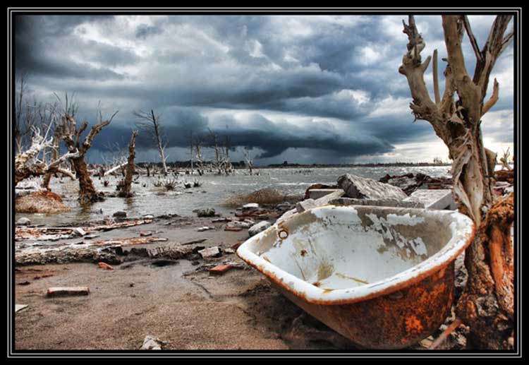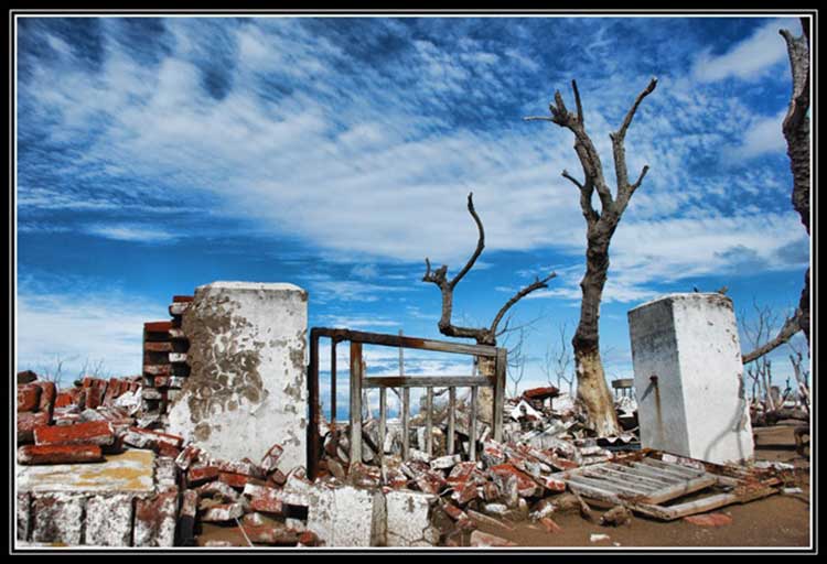 Con cuanto esmero se había esforzado su madre en mantener impoluto el porche de entrada del que fuera su hogar, cubierto ahora de lodo y escombros, siempre atenta a que, cuando volvían de jugar en la laguna, se quitaran los zapatos llenos de barro. Menos mal que no podía ver a que había quedado reducido el motivo de sus desvelos. Antes de entrar volvió la vista atrás y contemplo las calles por las que había llegado al estragado testigo de su infancia. Apenas podía reconocerlas, tal era la devastación.